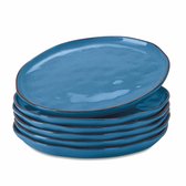 Un vernis réactif donne à cette belle vaisselle asiatique sa teinte bleu cobalt brillante avec des variations inhabituelles de couleur et de texture. La technique de glaçage ajoute une sensation riche et rend chaque pièce de grès japonais de haute qualité unique. Les formes organiques et l’apparence luxueuse ajouteront un bel élément à l’agencement de votre table.