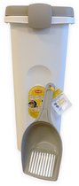 Le couvercle robuste se ferme en toute sécurité , gardant tout à l'intérieur au sec et protégé, même des museaux curieux ou des journées humides. Et pratique :une pelle est incluse en standard , afin que vous puissiez saisir facilement et de manière hygiénique la bonne quantité.