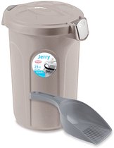Tonneau avec couvercle «Tom» - 46 litres - Tonneau d'alimentation - Tonneau de stockage - Conteneur d'alimentation - Avec pelle - Taupe
