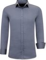 Écrit pour: TONY BACKER Luxe Blanco Men Chemises à manches longues - Coupe slim - 3082 - Blauw - Tailles: S