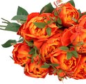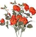 3x fleur artificielle rose Ariana de couleur orange. Ce rosier possède 4 branches avec 3 fleurs, 1 bouton floral et 2 boutons plus petits. Les 4 branches comportent environ 31 feuilles. Placez plusieurs fleurs dans un vase pour créer une belle décoration pour votre table à manger, par exemple. Longueur de la tige : environ 73 cm. Longueur jusqu'aux feuilles : environ 42 cm. Matière : Polyester.