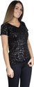 Top paillettes, chemise noire. Cette chemise est dotée de paillettes très résistantes à l'avant et à l'arrière. Cette chemise est en tissu extensible et entièrement doublée. Convient jusqu'à et y compris 42.
