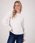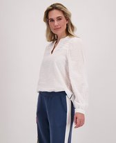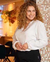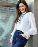 • Haut col rond féminin• Fermeture à boutons dans le dos• Plis sur les épaules• Poignets élastiqués avec volants• Stretch• Coupe ample