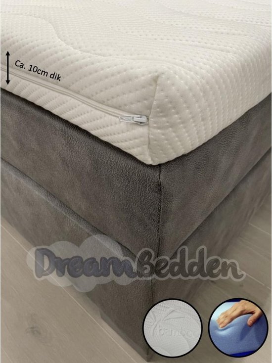 Ce surmatelas de luxe est de qualité hôtelière. Le surmatelas épais est recouvert d'une housse en Bamboo est super aérée et qui garantit qu'il reste frais en été et chaud en hiver. Le noyau du surmatelas est en mousse froide HR45. La mousse à froid est une mousse de polyuréthane, mais elle n'est pas fabriquée à haute température lors de la fabrication. La mousse froide a naturellement une structure à cellules ouvertes, ce qui signifie que le matériau respire très bien et absorbe bien l'humidité. La formation de fosse se produit à peine avec de la mousse froide. Le matériau offre un haut niveau de confort et une longue durée de vie. Les surmatelas et matelas en mousse froide sont généralement de bonne qualité et les propriétés uniques sont assez élevées. La mousse froide offre également la meilleure contre-pression progressive, en d'autres termes: beaucoup de maintien.