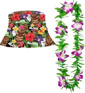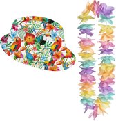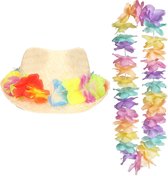 Toppers - Ensemble de déguisement de carnaval - party tropicale hawaïenne - chapeau de paille - avec guirlande de fleurs complètes en violet - pour adultes