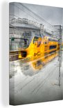 Train abstrait le long de la plate-forme humide à Amsterdam 40x60 cm - Tirage photo sur toile (Décoration murale salon / chambre)