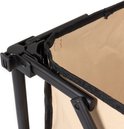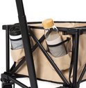 Le chariot est également équipé de 2 porte-gobelets, dispose également d'un filet de rangement à l'intérieur et d'une section séparée dans laquelle les clés, le téléphone portable et l'argent sont en sécurité dans un compartiment zippé. Si le chariot est devenu sale après une activité avec de la boue et de la pluie, la housse entière peut être déconnectée du chariot en un instant grâce à un système Click In-Out. Ce système garantit que vous n'avez pas besoin de desserrer les vis ou de retirer des velcros gênants. Une fois la poubelle du chariot lavée, vous pouvez facilement la remettre en place dans le cadre du chariot sans vis ni Velcro.