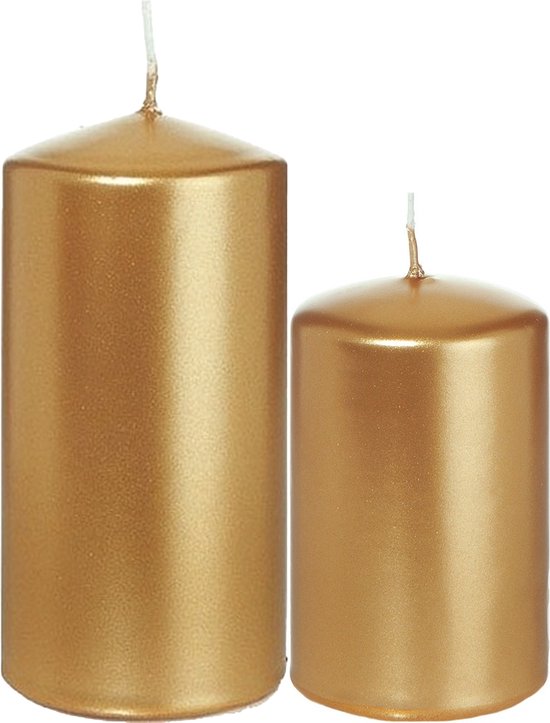 Bougies cylindriques set de 2x pièces or 8 et 12 cm