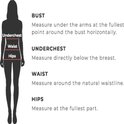 - Mensurations du mannequin : Hauteur : 1,74, Buste : 88 Tour de taille : 59, Hanches : 88