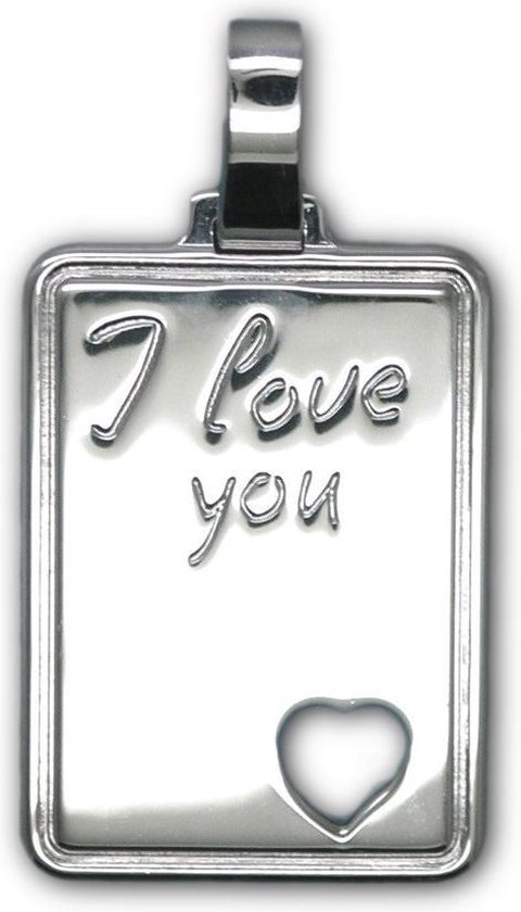 TRESOR pendentif rectangulaire avec coeur ouvert "Je t'aime" - Argent