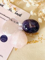 Ce qui est fourni si vous commandez ce produit. - un sac avec 3 pierres précieuses dont 1 cristal de roche, 1 améthyste et 1 quartz rose