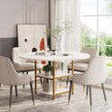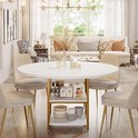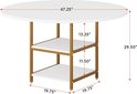 - Design Elegant et polyvalent : la table à manger Tribesigns de 47 pouces présente une superbe palette de couleurs blanc et or qui ajoute une touche d'élégance à votre salle à manger, salon ou cuisine. (Remarque : plateau de table divisé, pas une assiette entière). La conception de la table ronde crée une atmosphère chaleureuse et accueillante, parfaite pour organiser des réunions ou prendre des repas en famille et entre amis. Les pieds en métal doré apportent une touche glamour, tandis que le plateau de table en bois blanc complète n'importe quel style de décoration, ce qui en fait un ajout polyvalent à votre espace.
