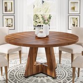 Tribesigns Table à manger ronde – Table ronde de 120 cm – Wit et Goud – Table de cuisine de ferme avec base en métal – Petite table de salle à manger moderne en Massief Hout pour salle à manger, Cuisine, salon