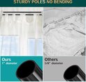 - Tringle à rideau double robuste : les tringles à rideaux de 2,5 cm de diamètre sont fabriquées en fer durable qui ne rouille jamais. Une tringle pour les rideaux en voile légers et l'autre tringle pour les rideaux occultants lourds. La charge maximale des tringles à rideaux à double fenêtre est de 22,7 kg et peut suspendre la plupart des types de rideaux lourds.