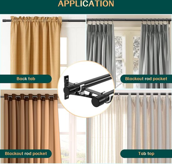 - Large application : avec un design élégant et minimaliste, notre double tringle à rideau moderne noire se marie bien avec tous les types de rideaux et rideaux : transparents, passe-tringle, occultants, œillets et œillets, rideaux à rebord. Idéal pour chambre, dressing, salon, salle à manger et cuisine.
