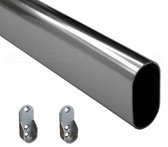 Tringle à vêtements Chrome - 30x15mm - 1 mètre - Tringle de placard - Y compris les supports