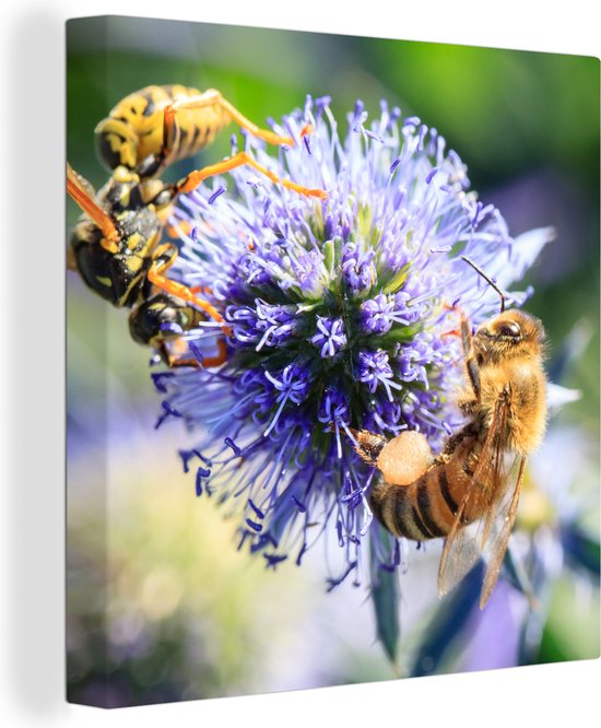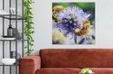 Tableau sur toile Trois abeilles sur chardon balle - 90x90 cm - Décoration murale