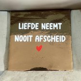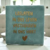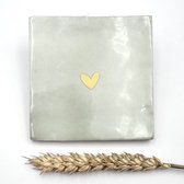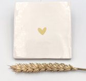 Avec les différents textes présents sur nos carreaux, ils constituent un cadeau idéal pour toute occasion. Nos carreaux ont une taille de 10x10 cm et sont disponibles en blanc cassé, vert ou rose poudré. Pour l'impression des textes, nous utilisons un sérigraphe qui, avec beaucoup d'amour pour son métier, imprime les textes en or métallisé sur les carreaux.
