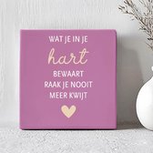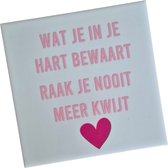 Tuile - Ce que tu gardes dans ton cœur, tu ne le perdras jamais (rose) - gris