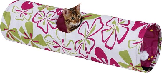 Tunnel pour Chat Fleurs - 25 x 90 cm - Joli Tunnel de Jeu pour Chats