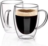 TuttoBello - 2 pièces verres à double paroi avec anse - adaptés à différents types de café - Set de 2 (350 ml)