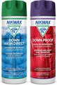 Un pack de 2 Nikwax comprenant 1 flacon de Down Wash Direct 300 ml (détergent) et 1 flacon de Down Proof 300 ml (agent d'imprégnation).