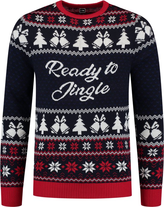 - Pull de Noël laid Ready to Jingle bleu foncé-blanc-rouge.