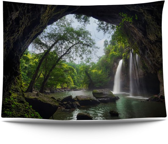 Ulticool - Cascade Transparente Arbres Nature - Affiche Tapisserie - 200x150 cm - Groot tapisserie - Affiche jardin Tentures