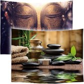 La taille de ce lot de 2 tentures murales est pratique ; chacun 73 x 95 cm. Ils s'emboîtent exactement au-dessus du canapé ou d'un lit.