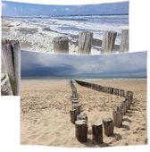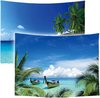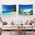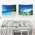 Ulticool - Tapisserie - Plage Mer Palmier Été - Set de 2 Motifs - 73 cm x 95 cm - Tissu Tapisserie Peinture - Poster Art - Blauw