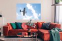 Un avion Spitfire d'en bas avec un poster ciel nuageux 120x80 cm - Tirage photo sur Poster (décoration murale salon / chambre)