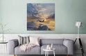 Un avion volant dans le ciel avec des rayons de soleil Aluminium 90x90 cm - Tirage photo sur aluminium (décoration murale en métal)