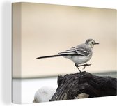 Pipit rouge sur une branche avec un fond clair Toile 160x120 cm - Tirage photo sur toile (Décoration murale salon / chambre) XXL / Groot format!