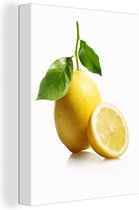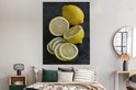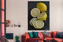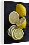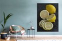 Un citron simplement rendu en plusieurs morceaux sur fond sombre Toile 120x160 cm - Tirage photo sur Toile (Décoration murale salon / chambre) XXL / Groot format!
