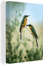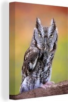 Petit hibou sur la photo avec un fond coloré Toile 120x160 cm - Tirage photo sur Toile (Décoration murale salon / chambre) XXL / Groot format!