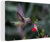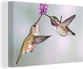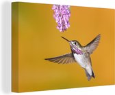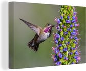 Un colibri calliope aux fleurs violettes Toile 180x120 cm - Tirage photo sur Toile (Décoration murale salon / chambre) XXL / Groot format!