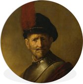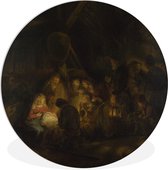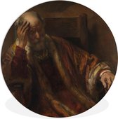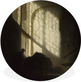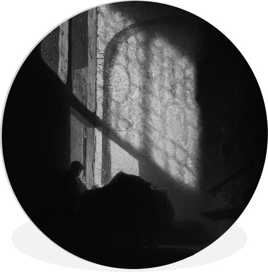 Un homme lisant dans une chambre haute - Peinture de Rembrandt van Rijn Plaque en plastique de cercle mural