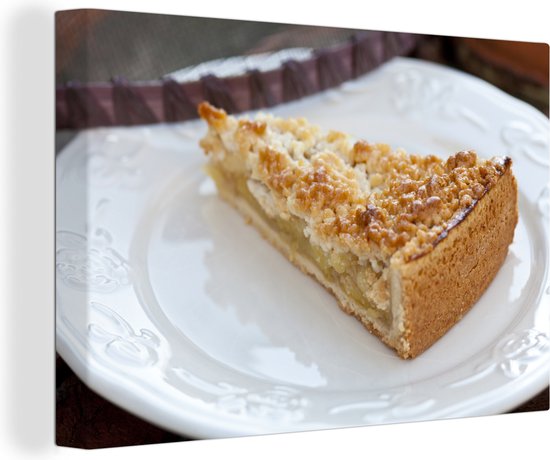Un morceau de tarte aux pommes avec des miettes servi sur une toile tableau blanc 180x120 cm - Tirage photo sur toile (Décoration murale salon / chambre) XXL / Groot format!