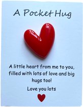 Un petit symbole, un grand geste ! Ce câlin de poche est parfait pour faire savoir à quelqu'un que vous pensez à lui. Portable, doux et symbolique – idéal pour une poche, un sac ou une table de chevet pour vous rappeler que vous n'êtes jamais seul. Offrez-le en guise de soutien, pour vous remonter le moral ou simplement parce qu'un peu d'amour est toujours le bienvenu.