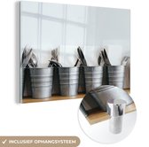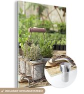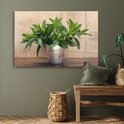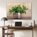 Un vase en métal rempli à ras bord de feuilles de menthe Plexiglas 120x80 cm - Tirage photo sur Glas (décoration murale en plexiglas)