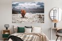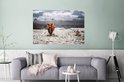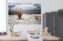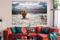Un veau des Highlands écossais se dirige vers l'appareil photo Poster 180x120 cm - Tirage photo sur Poster (décoration murale salon / chambre) / Poster Animaux sauvages XXL / Groot format!