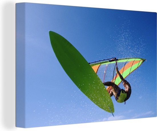 Un véliplanchiste accroche dans les airs toile 140x90 cm - Tirage photo sur toile (Décoration murale salon / chambre)