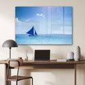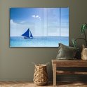 Un voilier bleu au large Plexiglas 120x80 cm - Tirage photo sur Glas (décoration murale plexiglas)