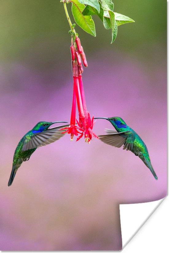 Une belle photo symétrique d'un ensemble de colibris buvant à une fleur au Costa Rica Poster 60x90 cm - Tirage photo sur Poster (décoration murale salon / chambre)