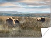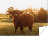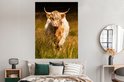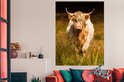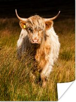 Une blonde highlander écossais dans les hautes herbes Poster 120x160 cm - Tirage photo sur Poster (décoration murale salon / chambre) / Poster Animaux sauvages XXL / Groot format!