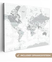 Une carte du monde grise avec texte anglais Toile 120x80 cm - Tirage photo sur toile (Décoration murale salon / chambre)
