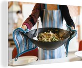 Femme au wok rempli 90x60 cm - Tirage photo sur toile (Décoration murale salon / chambre)