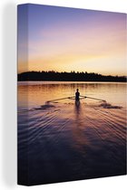 Tableau sur toile Une femme ramant lors d'un lever de soleil - 90x120 cm - Décoration murale