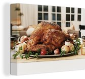 Tableau sur toile Une dinde rôtie sur la table pour le dîner de Thanksgiving - 120x90 cm - Décoration murale