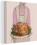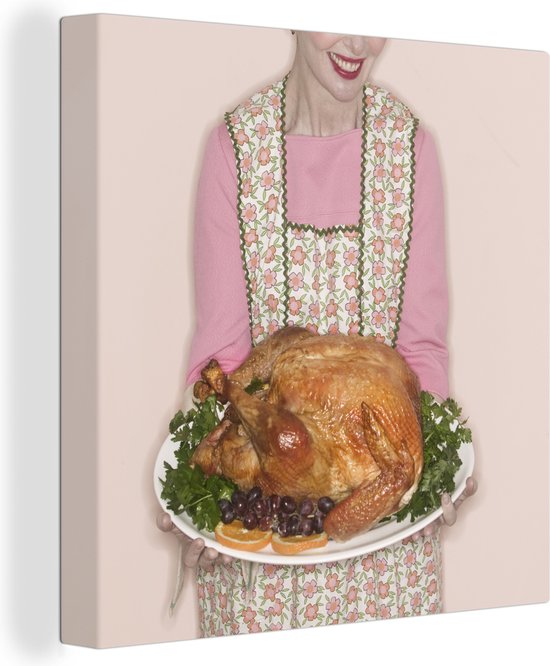 Une femme avec une dinde pour le dîner de Thanksgiving toile 90x90 cm - Tirage photo sur toile (Décoration murale salon / chambre)